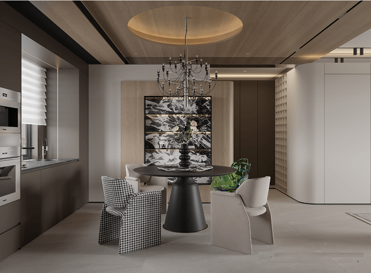 - ** Ylelliset materiaalit **: Ylellisyyden tunne johtuu usein materiaalien tekstuurista ja tunteesta. Esimerkiksi luonnollinen puu, marmori, metalli ja lasi, kun ne yhdistetään harkiten, voivat nostaa tilan laatua.